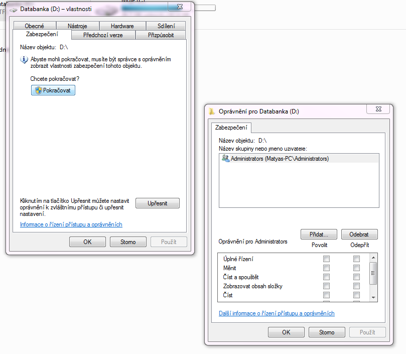 vlastnosti disku/zabezpečení popř. upřesnit. (nech tam účty s číslíčkama).