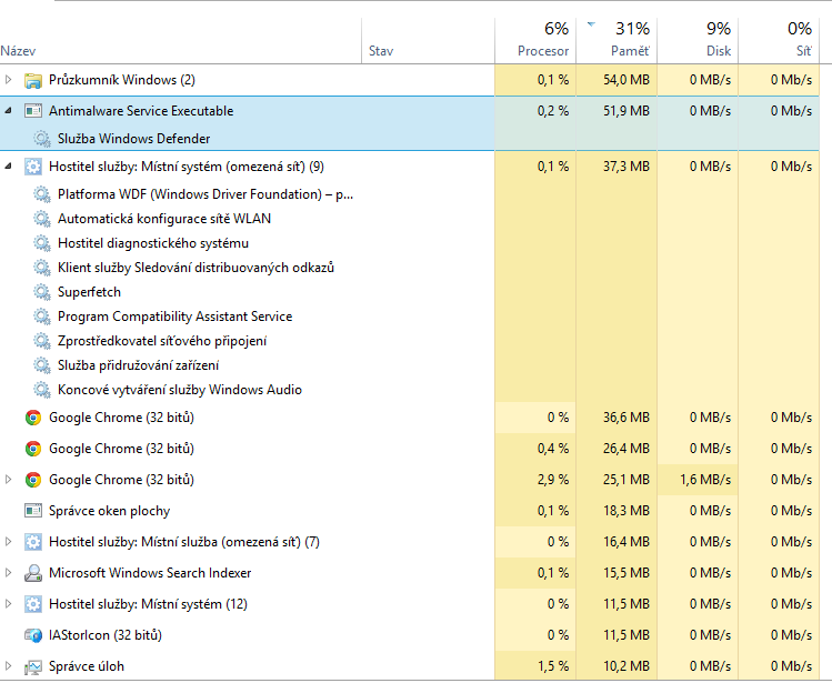 Na prvy pohlad tam zavadne nevidim nic, ale tie sluzby by bolo treba jednu za druhou overit co to je a googlit. Pozri si ale predsa v spravci procesov podrobnosti o tej sluzbe ktory bere tych 20%, ze ktora to presne je. Ak to nezobrazi spravca procesov, tak potom program procexp od sysinternals.