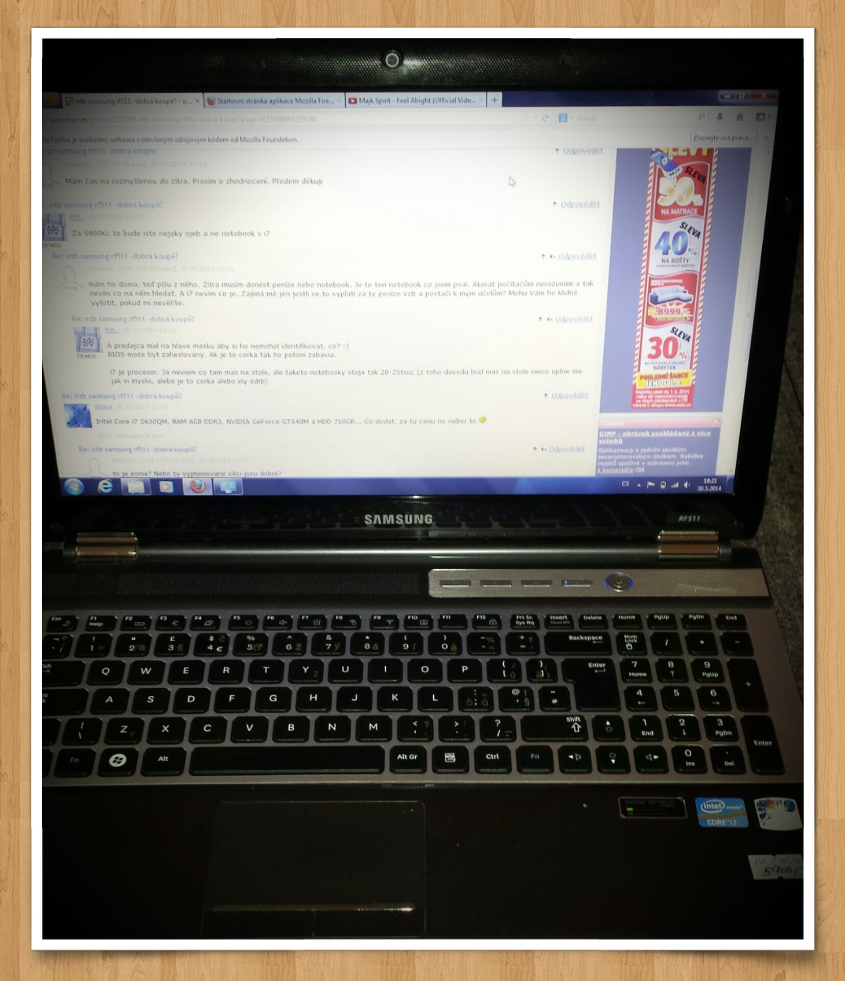 Mám možnost koupit výše zmíněný notebook za 5900kč. Nejde mi sem vložit odkaz, ale když zadáte název samsung rf511 do vyhledávače vyjedou Vám parametry. Má nějaké vady na kráse, ale nic co by mne odradilo. Budu používat hlavně na internet, práci s fotografiemi a video. Myslím, že 500 minimálně ještě ukecám. Je to výhodná koupě? A v čem spatřujete nedostatky tohoto notebooku? Rozjedu fifu aspoň 013? (Jednou za půl roku) Předem díky za odpověďi a omlouvám se za sloh. Píšu z mobilu. Přeji hezký víkend všem