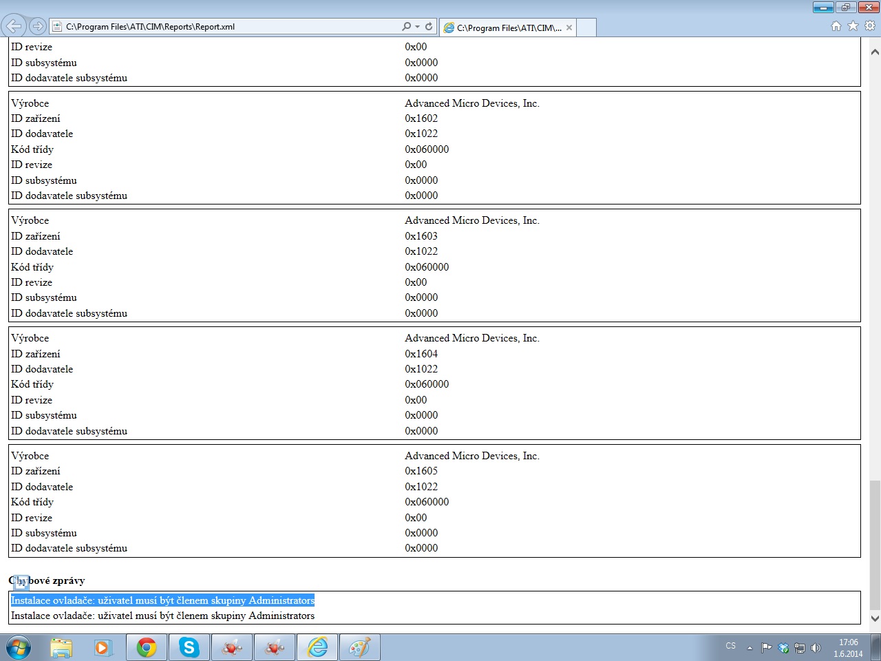 A když stáhnu ofiko ovladač z amd.com, přímo na mojí kartu, tak při instalaci mi vyskočí chyba že došlo k problémů při instalaci ovladače grafické karty, a pak že nejsem oprávněn instalovat ovladače. Ze nejsem administrátor. Přitom jsem jediný uživatel a zněl bych mít všechna prava.