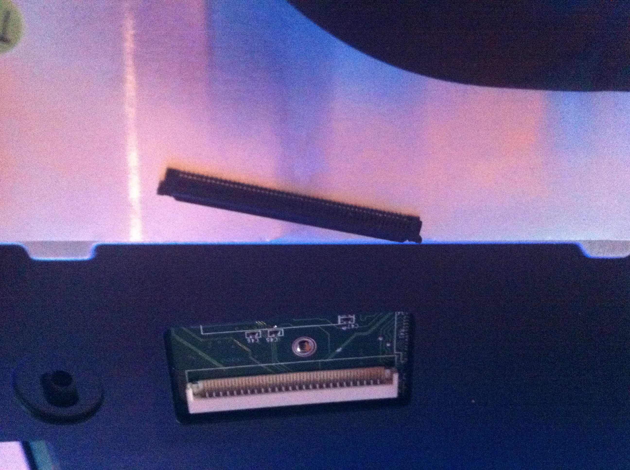 Ježiši říkám otevření: nechtem vusunout plastovej pasek od konektoru a překlopit ho směrem nahoru. Z…