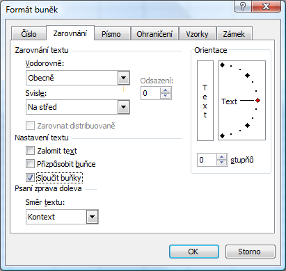 Označ buňky, potom Formát buňky,Zarovnání a zaškrtnout Sloučit (zarovnat na střed). [http://pc.porad…