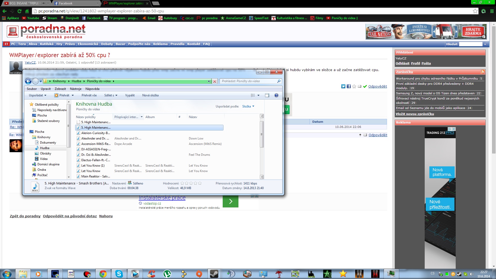 Přidat otázku mezi oblíbenéZasílat nové odpovědi e-mailem WMPlayer/explorer zabírá až 50% cpu ?