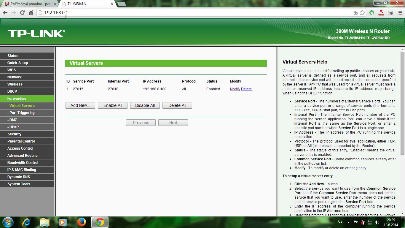 Děkují za rychlou odpověď. Port Forwarding mám nastaveni a stejně mi to nejde.. Teda jestli to dělám…