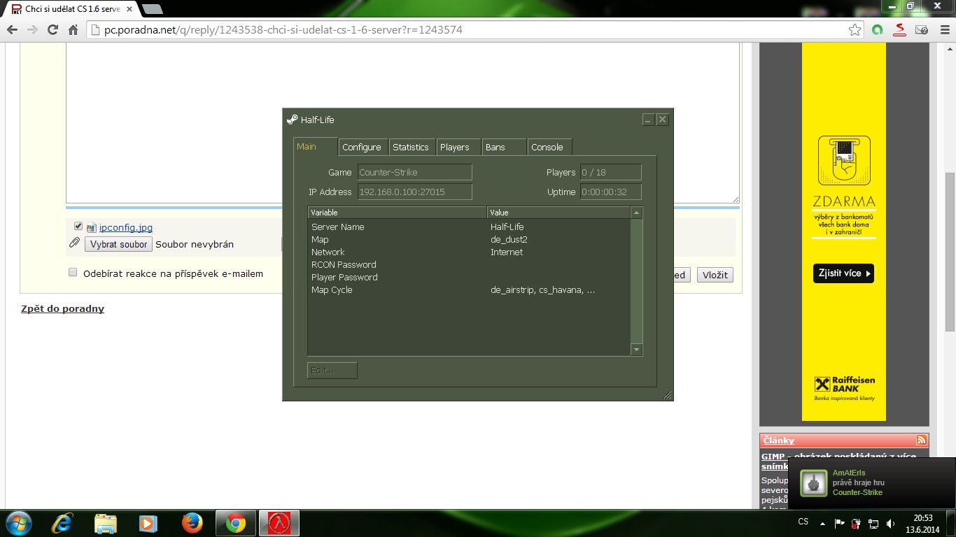 Přidat otázku mezi oblíbenéZasílat nové odpovědi e-mailem Chci si udělat CS 1.6 server
