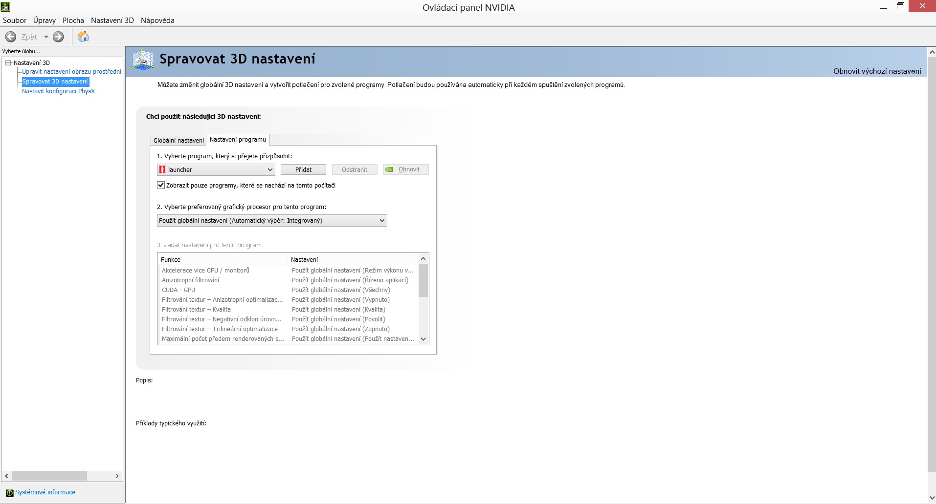 Děkuji za reakce, control panel nVidia samozřejmě defaultně mám nainstalovaný. Podívám se tam.:-)
