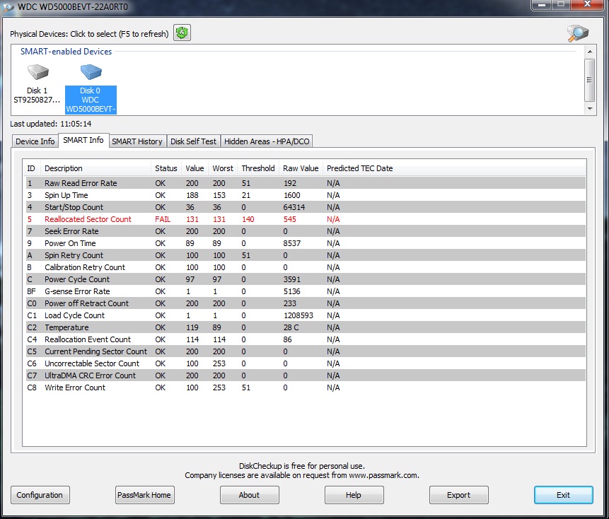 Klidně můžete vyzkoušet diagnostickým programem od výrobce disku. Pokud se počet realokovaných sekto…
