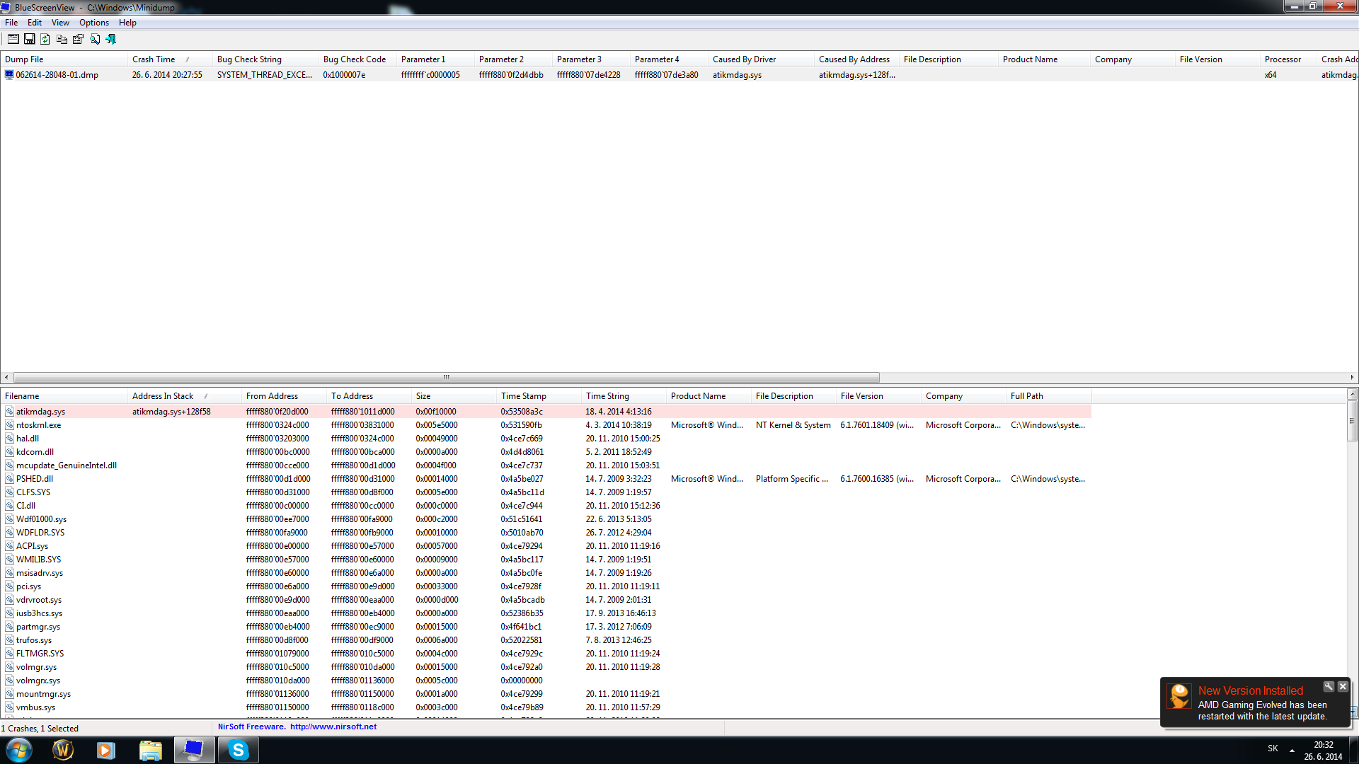 dobrý deň takźe Blue Screen hodilo znova a tento krát uź aj program zaznamenal ... takže vám tu post…