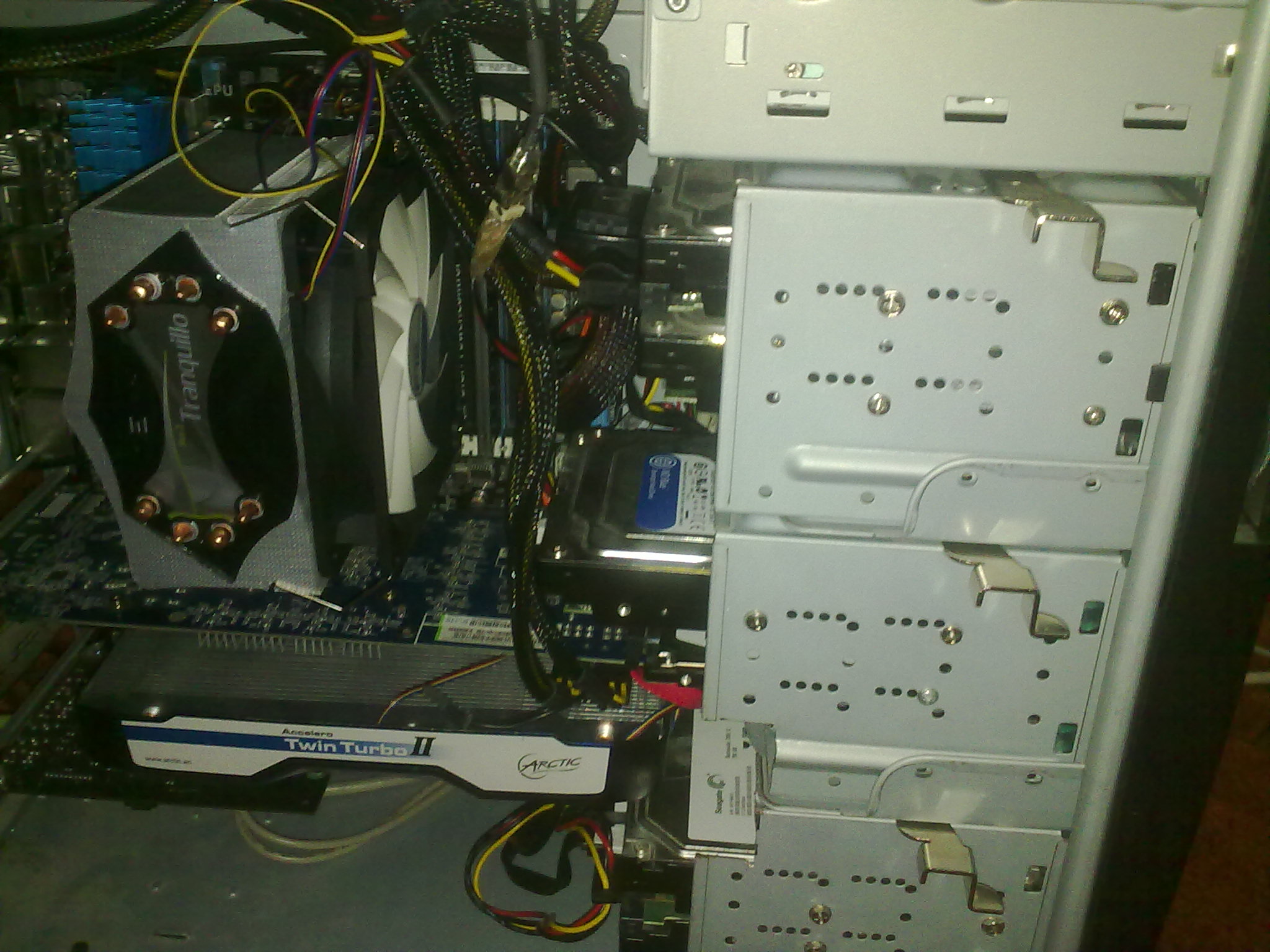 Na tom orázku to je snad vidět ne. Nacpaná grafika tak tak se tam vlezla, proto vyrobím s nosníku klec a otočím hdd o 90st. A zároven vyřeším ty dráty všude okolo.