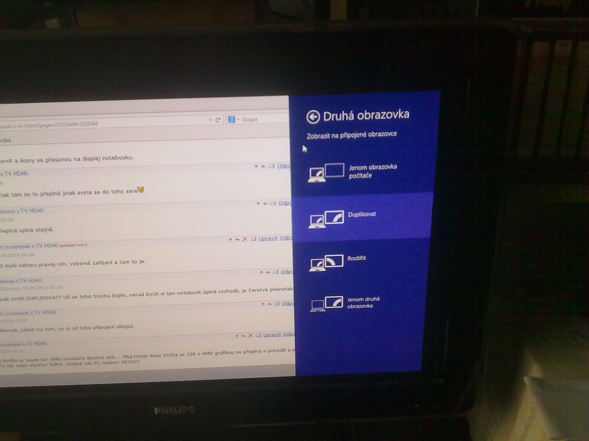 Takže WIN+P a pak zvolit DUPLIKOVAT? Už se toho trochu bojím, nerad bych si ten notebook úplně rozho…
