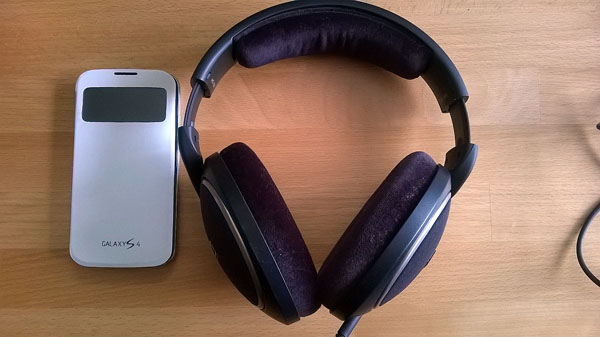 To neni iPhone, ale Galaxy S4. Pokud máš malou hlavu, tak se podívej nahoře na velikost Sennheiserů…