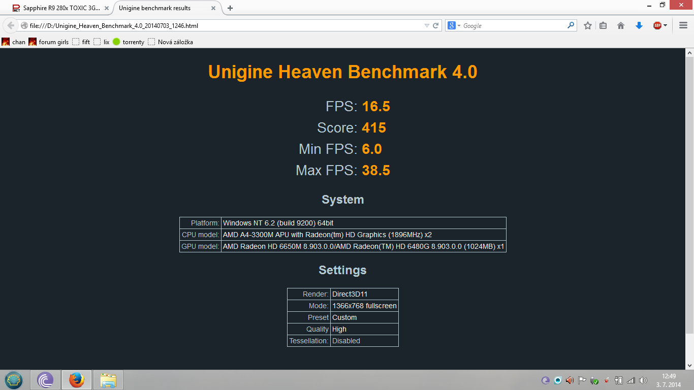 Sapphire R9 280x TOXIC 3GD slabé fps