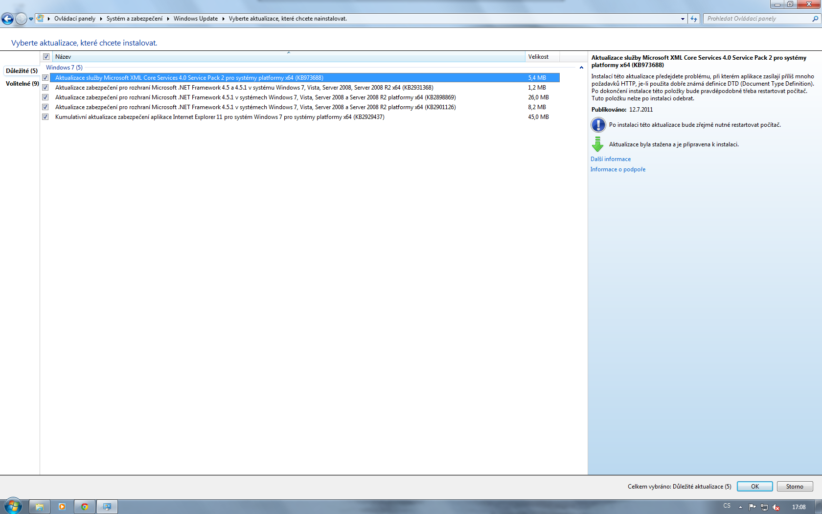 Z toho "foto" sa dá akurát poznať, že máš vybratých 5 aktualizácii, nič viac! Stlač OK...