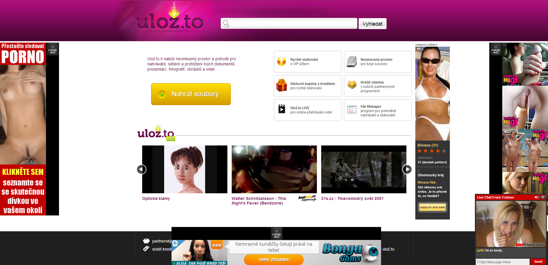 Vir mě při návštěvách obyčejných stránek jako ulož.to atd. obtěžuje porno reklamama po levé,pravé a dolní straně + online video v pravém dolním rohu VIZ obrázek č.1