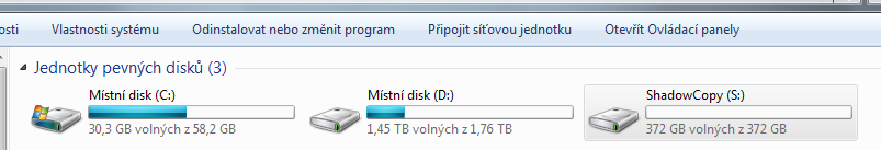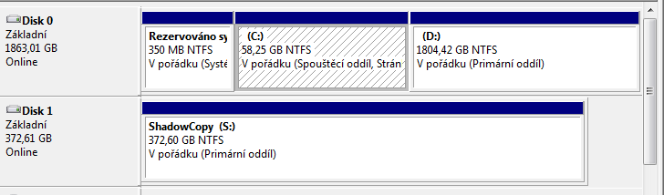 Po upgrade počítače mám 2 disky v Mirroru, rozdělené na 2 partition. Mimo to mi zbyl 400GB disk a protože pro něho nemám jiné využití (data zálohuji po síti), tak bych chtěl na něho přesunout úložiště pro shadowcopy + bitovou kopii Windows 7.