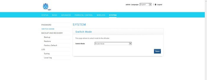 Administrace -> System -> Switch Mode a zrušit Router Mode.