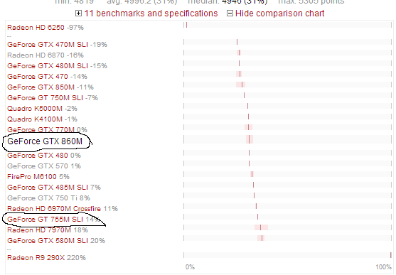 NVIDIA GeForce GTX 860M (4GB) vs. 2x NVIDIA GeForce GT 755M (2GB) SLI