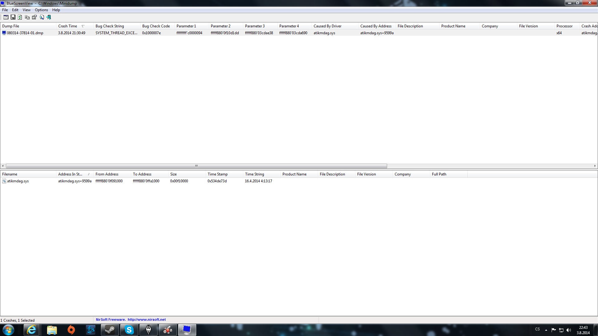 Při spuštění se podívám do programu BlueScreenView a vždy mi to tam hodí tenhle nebo podobný soubor (atikmdag, atikmpag) - viz přiložený obrázek.
