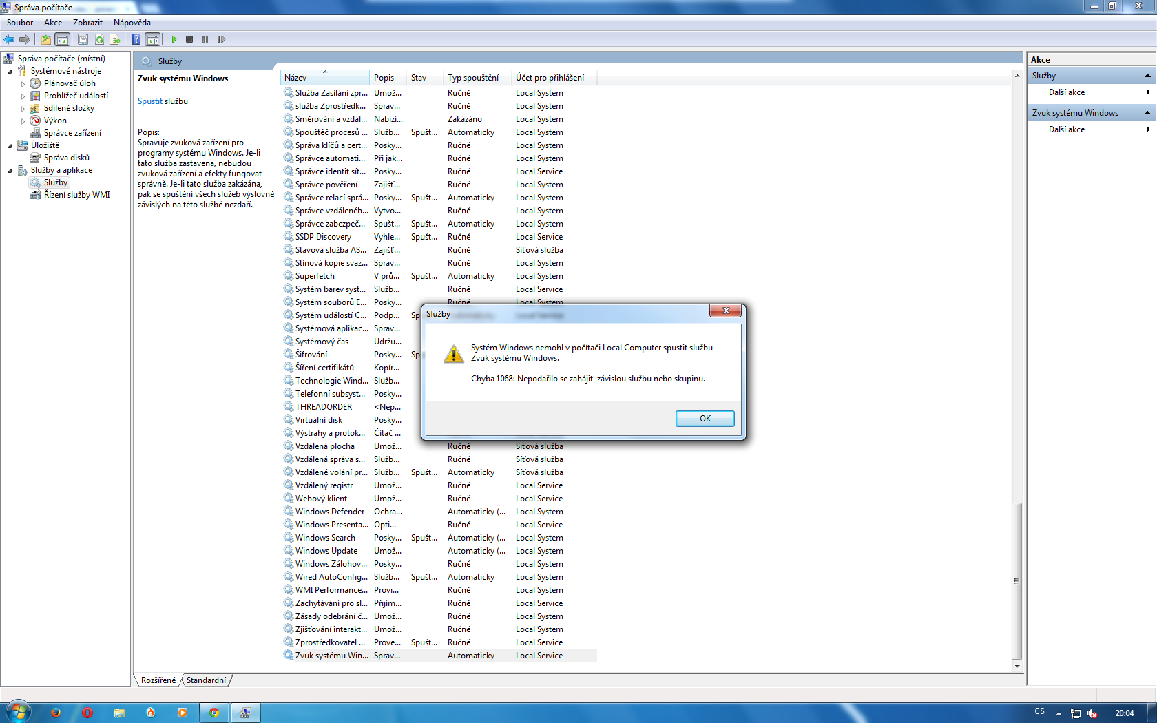 Já vím, to jsi už psal. Běží ty závislé služby? Asi by bylo rychlejší ty Windows přeinstalovat.