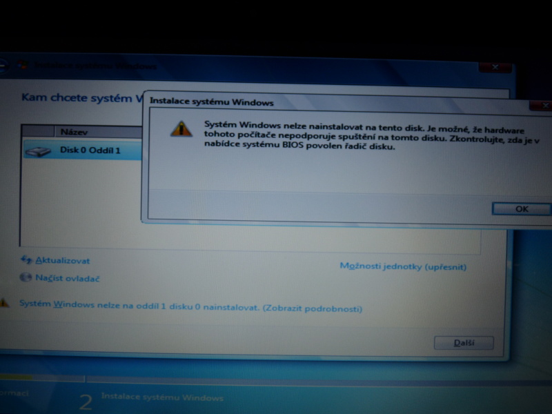 Instalace W7/Pro zase hlásí, že: