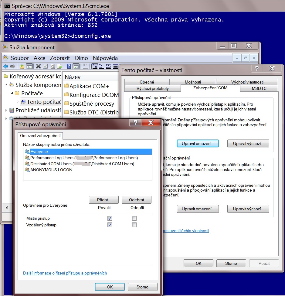 | Tím myslíš tab Default COM Security? Z toho tvého popisu se teda nic moc zjistit nedá.