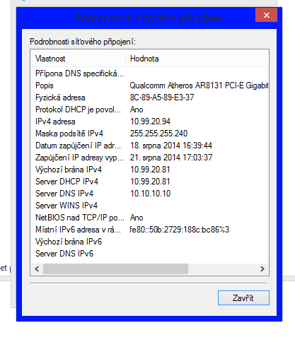Dej sem výpis příkazu: "ipconfig /all"