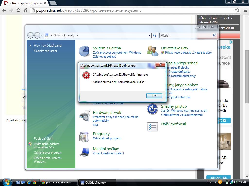 Na tom obrázku ale není nic o správci systému... Prostě Bránu firewall spusť a nastav nejprve ve Slu… poslední