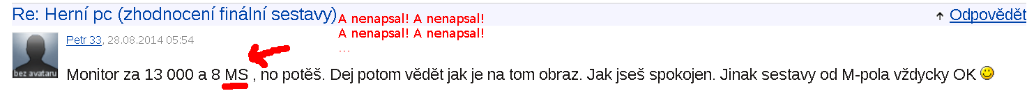 Monitor za 13 000 a 8 MS , no potěš. Dej potom vědět jak je na tom obraz. Jak jseš spokojen. Jinak sestavy od M-pola vždycky OK