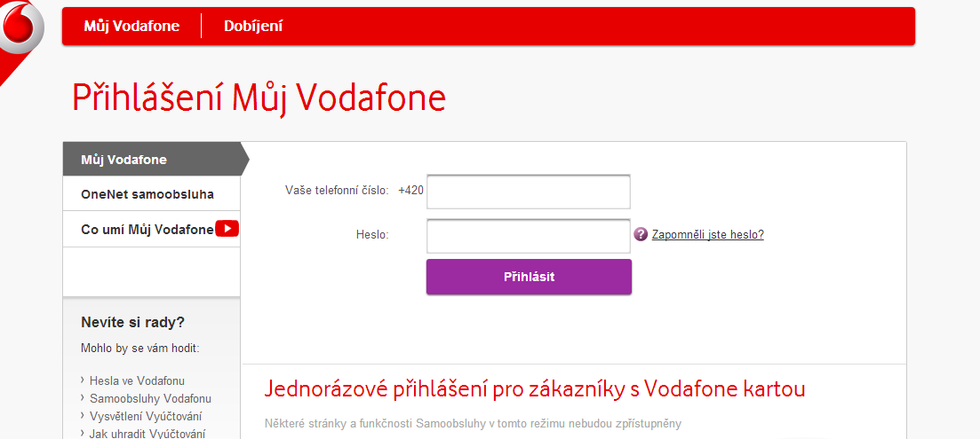 Už sis na Vodafone zřídil účet? Pak budeš vědět přihlašovací údaje. Samo se nenakope... poslední