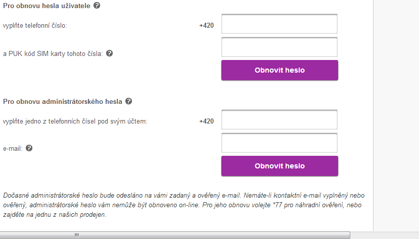 Heslo sis volil při koupi SIMky. Pokud si ho nepamatuješ, tak klikni na "Zapomněli jste heslo?".