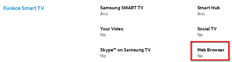Ahoj, prosím na televizi samsung EU32D5500RW když zapnu smart, objeví se jen nabídka předinstalovaných aplikací. Např. youtube, idnes apod. Jde mi o to, že když chci např. na seznam.cz, nemám to kam napsat. Není tam nikde browser kam bych napsal hledanou stránku. Nevíte jak toto vyřešit? Na jiné televizi samsung mi toto jde a dostanu se díky vyhledávači na jakoukoli stránku. Napadlo mi, že i když je to takzvaně chytrá televize, možná tohle neumí, a umí internet jen právě díky těm aplikacím. Ale nevím jak to zjistím. Poradíte mi prosím? Díky M.