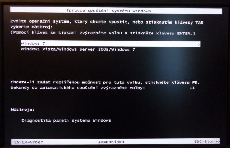 Po obnovení z bitové kopie jsou nabízený dva systémy.
