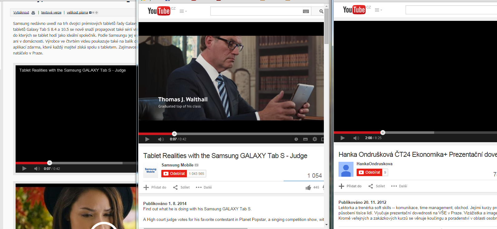Pluginy byly dobrý nápad, docela jsem na ně vsázel. Bohužel, také nic. Videa, která na YT nefungují, jsou např. Ondrušková (všechna v seznamu) a Film. Videa z nefunkčního odkazu jsou odsud. Ta však po kliknutí na ikonku Watch on Youtube.com fungují. Zajímavé je, že když na odkazu ze Samsungmanie spustím video, obraz se neukáže. Když však najedu kurzorem na posun času, vidím náhled videa a tam už v malém obdélníku obraz je. Nic naplat, pokusím se najít návod na změnu DNS.