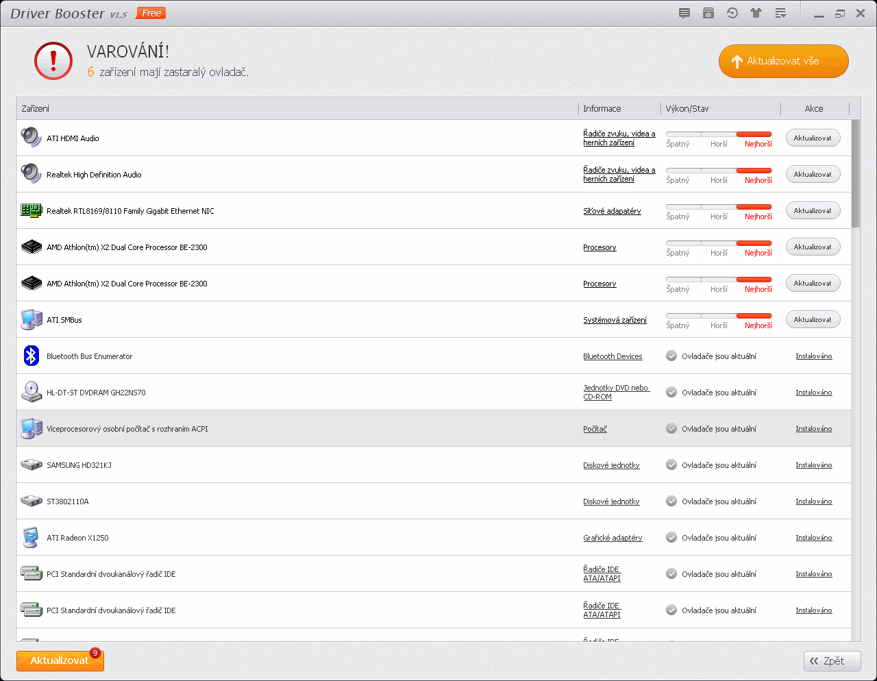 | minule tu kdosi propagoval driverbooster. byl jsem zvědavý, co na tom ty bfu vlastně vidí: