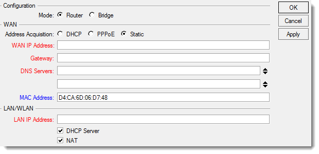 koupil jsem mikrotik rb951g-2hnd, ale mám problém s nastavením pevné adresy.