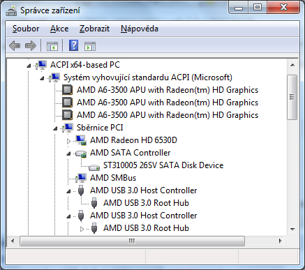 Ve Správci zařízení se po připojení k desce nic nepohne, ovladače AMD USB 3.0 Host Controller i Root Hub jsou aktuální, vyhledání změny hardware nic nedělá, ve Správě disků schovaný taky není.