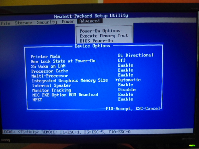 Tenhle bios co tam mám je jinej než na předchozích PC.U grafiky tam je pouze inegrated a počet MB.