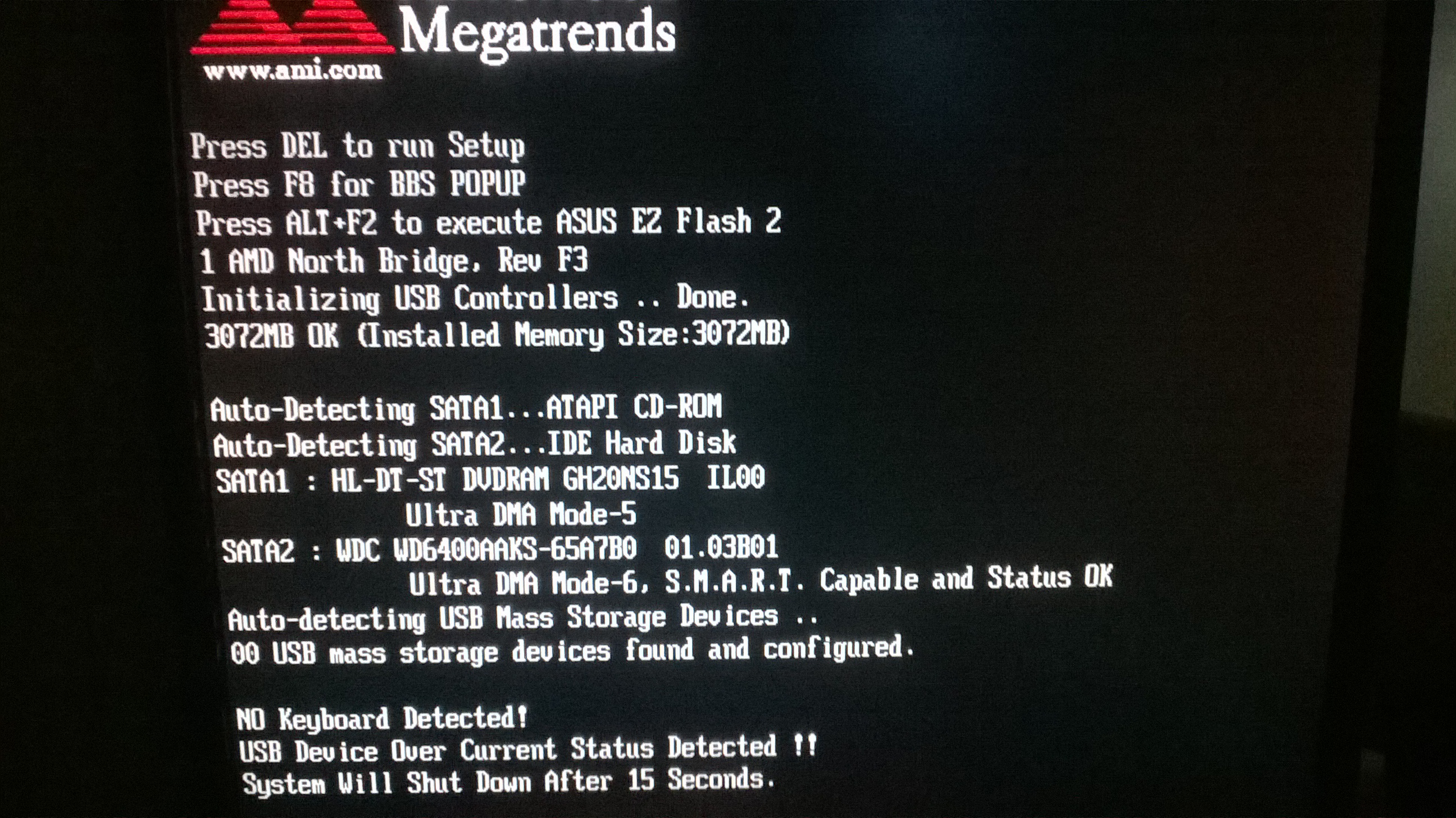 Zapne sa iba keď je myš a klávesnica odpojena , inak nefungujú