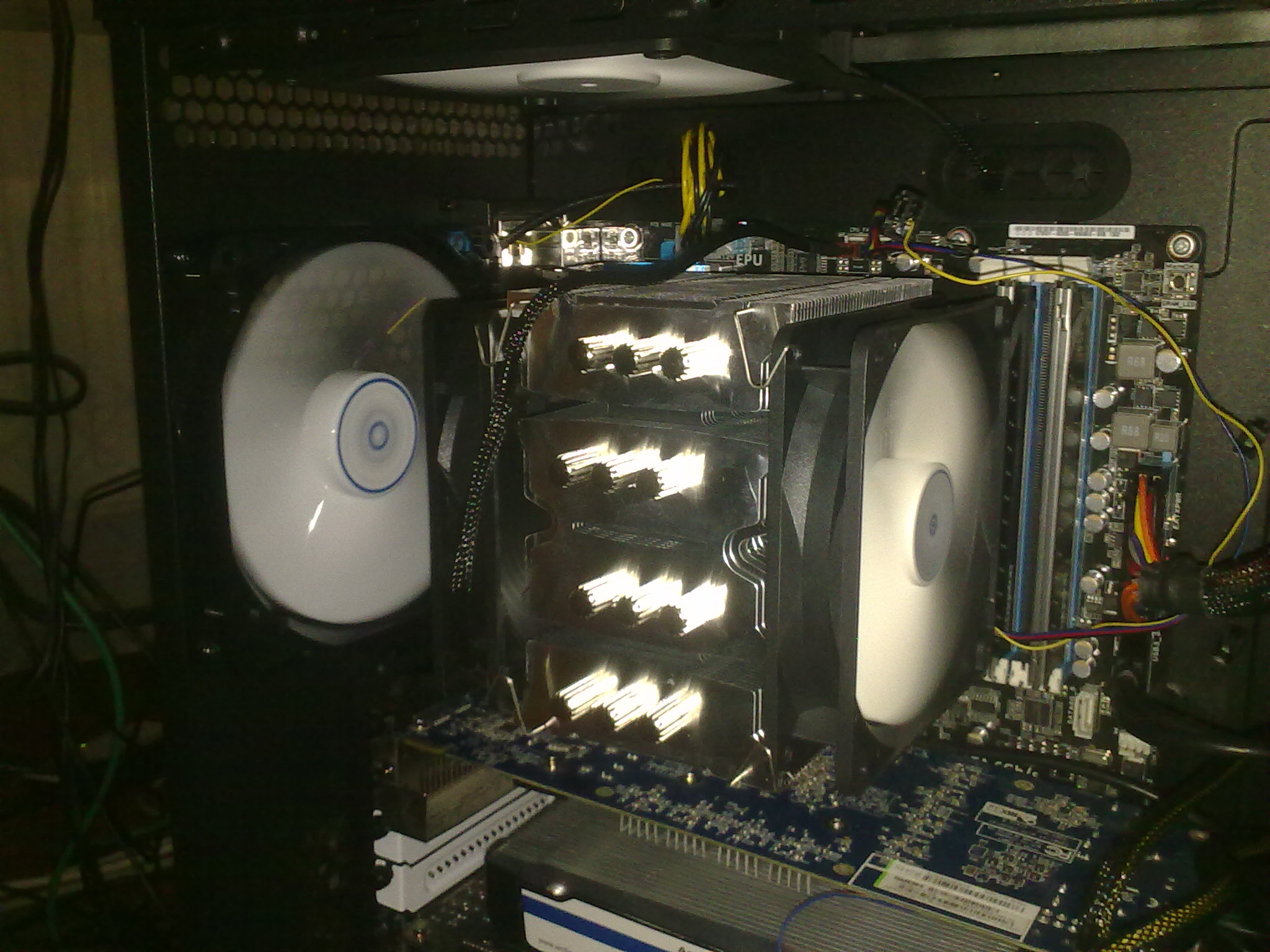 Ak mas heatpipe chladic tak heatpipes maju blbu ucinnost v niektorej polohe (tusim vodorovne) neviem jak si to tam nasadil. typicky to ma byt nasadene tak ze vetraky maju fukat akoze dozadu kejsu.