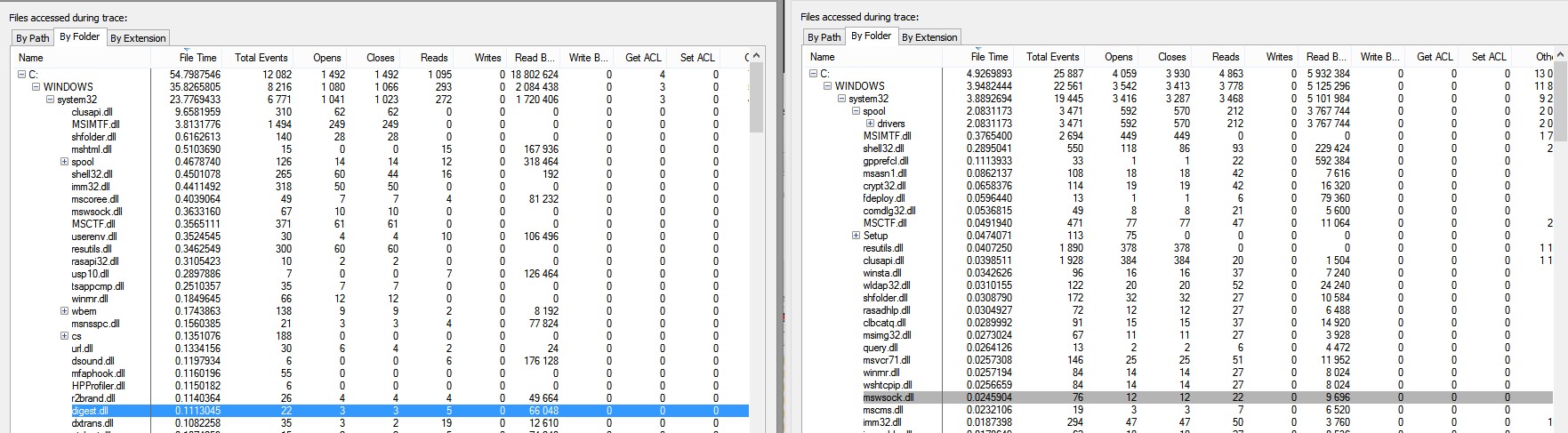 Systém prostě tuhne pod rukama, třeba až 20sec odezva, než zareaguje na jakýkoliv pohyb v systému, klidně jen vysunutí nabídky start, druhý si ševelí. Mrkněte na obrázek, je to ve stejný čas, a stejná doba záznamu (asi 90sec). V levo je onen tuhnoucí, v pravo je který jede dlouhodobě v klidu. Můžu ze záznamů popř. nahodit i jiný screen, nebo někomu poslat PML soubory z procmonu. Děkuji všem za tipy