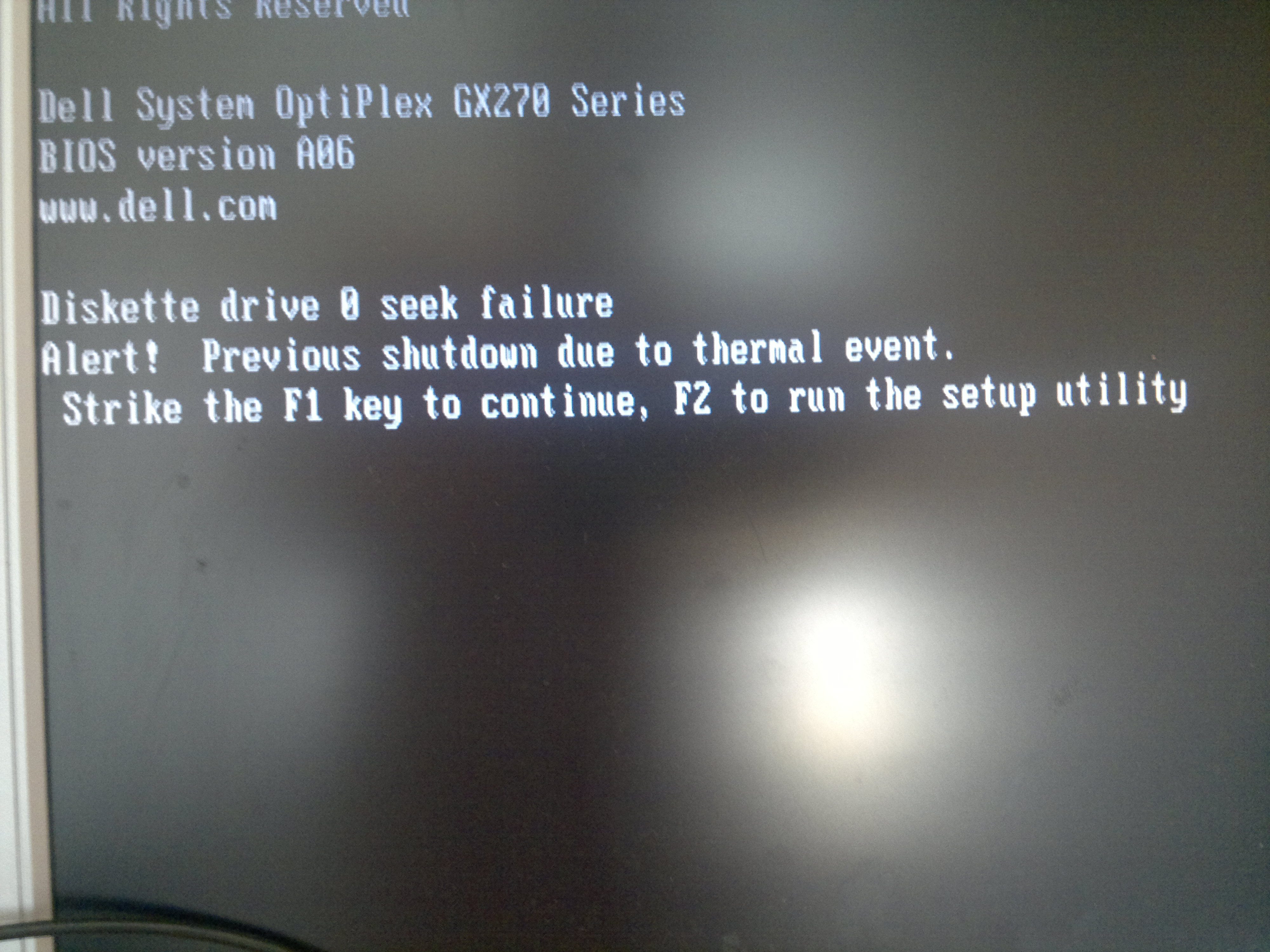 Diskette drive 0 seek failure