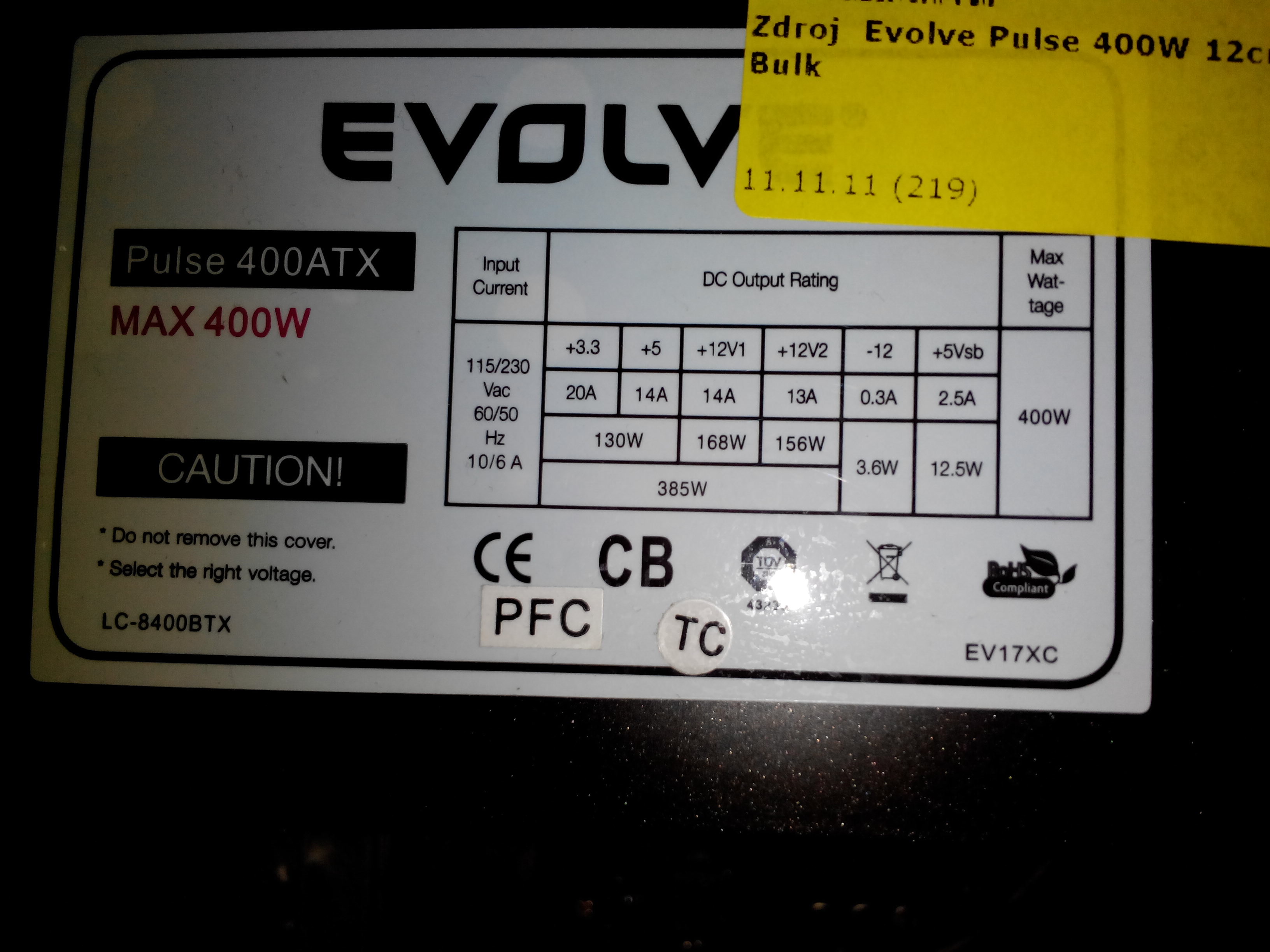 Zdroj mas 400W srot (tie su tak 100W) alebo 400W slusny? On to je trochu rozdiel. Zdroj ma nejakeho…