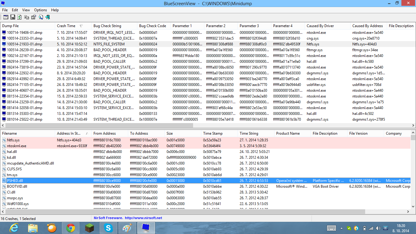 a ten mix příčin pádů, co ti zobrazil bsod viewer, to neřešíš?