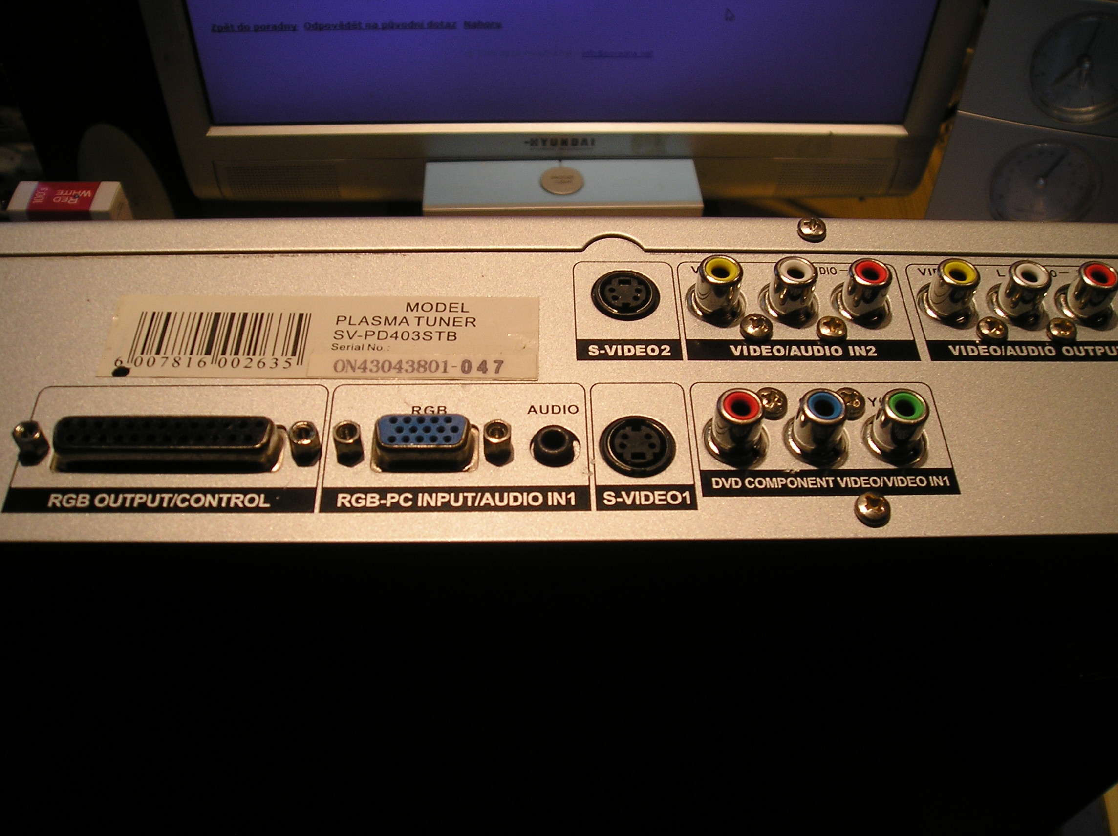 konektor VGA to je, ale při spojení s monitorem nijak nereaguje,proto jsem se v prvopočátku zajímal o nějaký dostupný návod-nenašel jsem nic.Hledal jsem dle typu ze zadního štítku přístroje:Sansui-model Sv-Pd 403.Dálkové ovládání mám, zkoušel jsem to s ním i bez něj.Konektory na repro jsou jasné , zkoušel jsem také propojení S-video kabelem,také bez úspěchu.