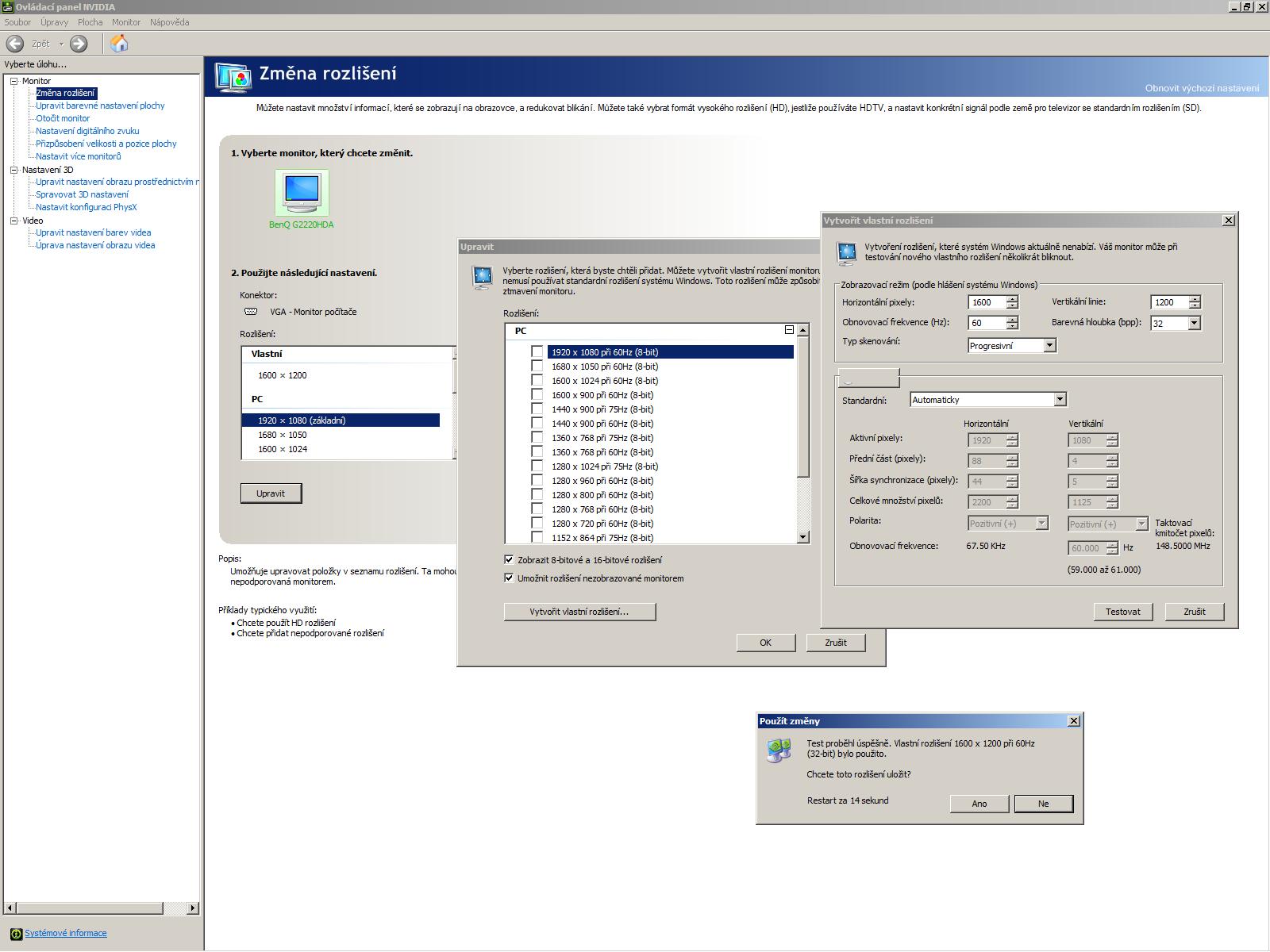 Mám monitor s rozlišením 16:9 ... 1920x1080,ale potřebuji ho dát do rozlišení 1600x1200 s 65 536 barvami. Do rozlišení 1600x1200 se mi to podařilo dát ale jak nastavím abych měl tolik barev ?