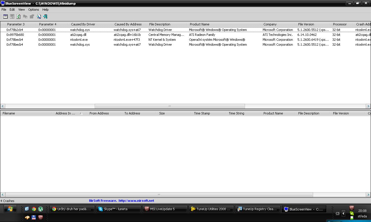 jojo 4 chyby 2x Watchdog Driver 1x ati 1x NT Kernel & System