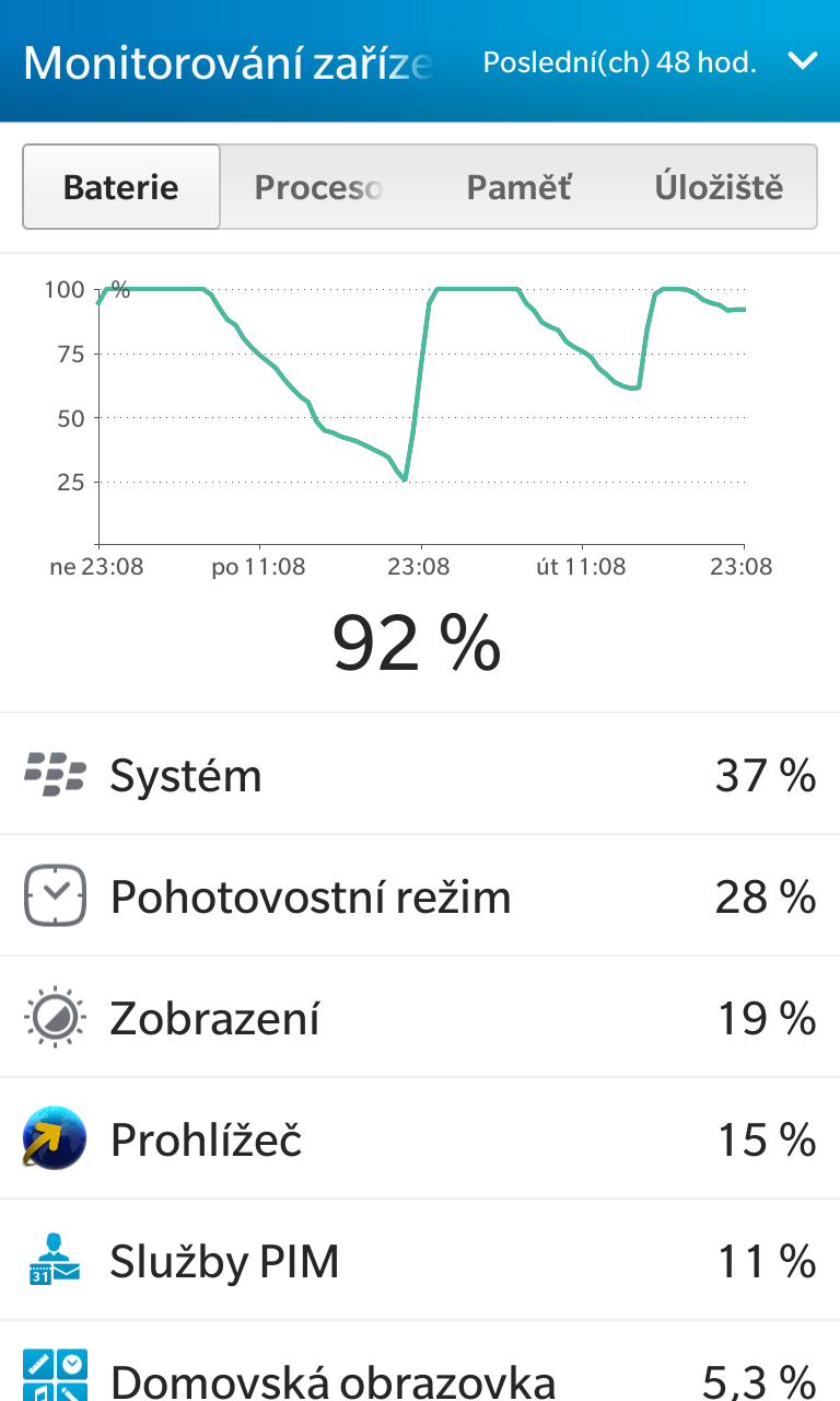 (na screenu - včera typický den, dneska trochu úspornější - bez focení a internet převážně na WiFi)