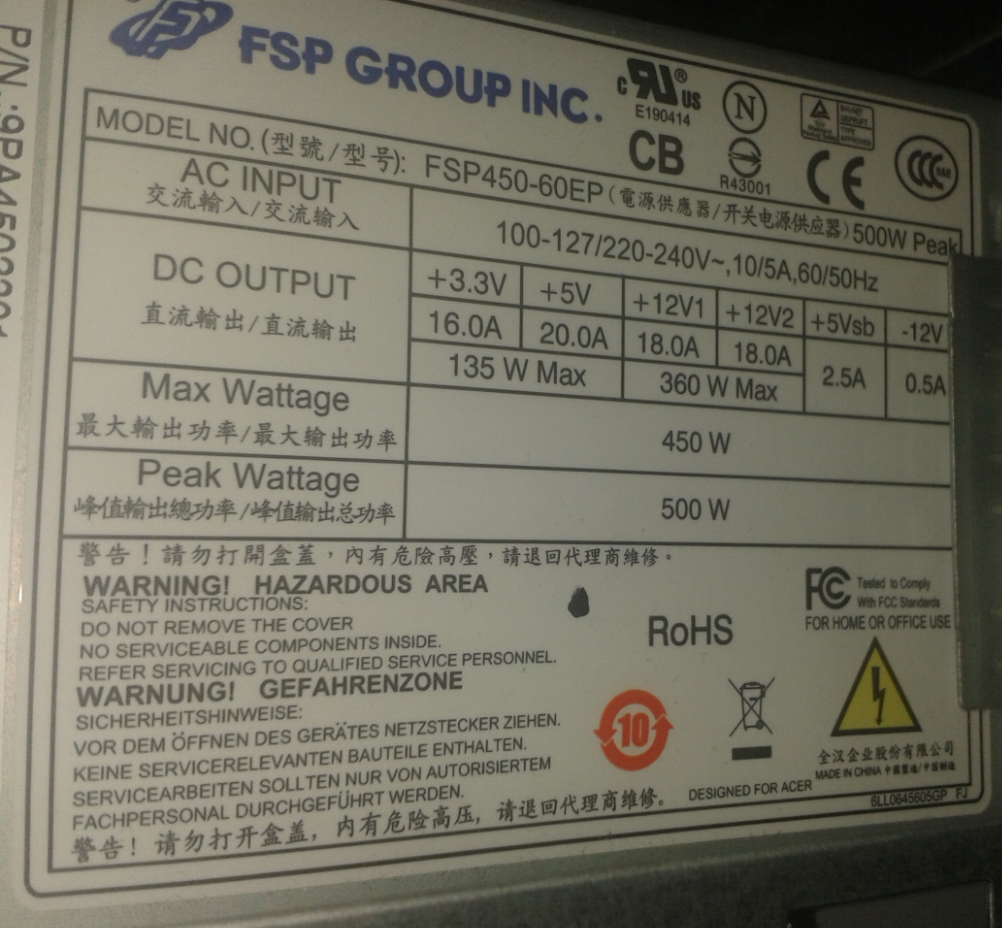 peak wattage 450W, max wattage 450w Aha, takže nevíš. Zdroje mají štítek, potřebné údaje jsou na ně…