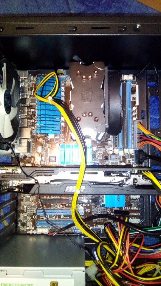 Zdravíčko,objednal jsem si componenty na alfa computer a zanesl do zdejší firmy nechat složit. Složený přinesu domů připíchnu k monitoru DVI kablíkem a nic. Píše mě to "no signal". Po zapnutí PC nepípne,větráky uvnitr case se oba točí,točí se i oba na GK. Zkoušel jsem připojit i k jinýmu monitoru,taky bez signálu.RAMky jsou zacvaknutý dobře,kontroloval jsem to nekolikrát.Zkoušel jsem i jinej kablík monitor-GK nic.Po zapnutí PC se chladič na CPU,netočí ani neškubne. Na disku nebyl OS,ale i tak by se mělo aspon něco ukázat ne? HDD jsem zkusil odpojit a taky nic. Přikládám fotky sestavy,jestli tam vizualne něco nevidíte.