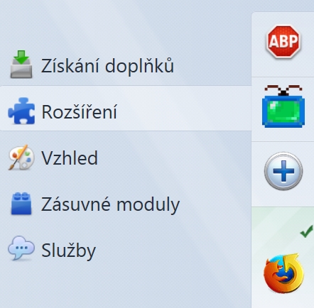 Rozšíření se do Firefoxu instalují.